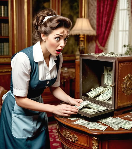 U 9:20 Jekaterina je ušla. Njen korak bio je tih kao šapat molitve. U početku nije primetila sef — sve dok sunčeva traka nije pogodila čelična vrata, bacila bljesak na pod, kao upozorenje: “Gledaj! Ovde je pakao.” Ukočila se. Perjasta metlica joj je iskliznula iz ruku i tupo tresnula. Prsti, naviknuti na krpe i četke, zadrhtali su. Pogled je pobegao u hodnik — prazan. Samo je starinski sat odbrojavao sekunde njenog suda.