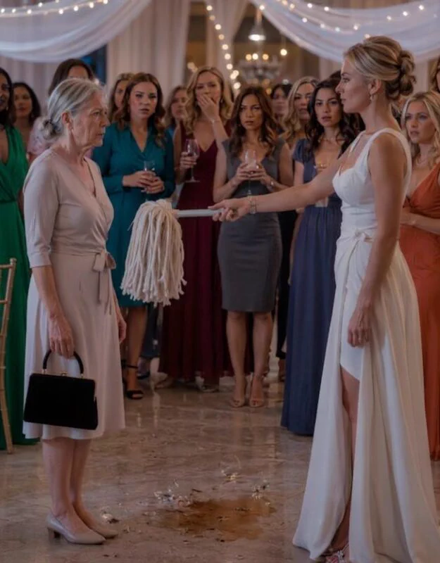 Na predsvadbenu proslavu došla je skromno obučena među elegantne goste. Tek što je proslava počela, Emily je najavila “malo zabave pre ručka”. U tom trenutku, čaša se “slučajno” prevrnula i razbila. Gosti su pogledali ka majci dok je Emily pružila krpu i rekla: