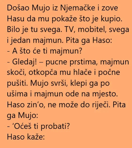 U vremenu kada nas svakodnevno preplavljuju ozbiljne vesti, ponekad je upravo jedan dobar vic ono što nam treba da dan započne s osmehom. Danas donosimo kratku i simpatičnu šalu o Mujevom povratku iz Nemačke, kulturnim razlikama – i majčinoj zbunjenosti. 👇